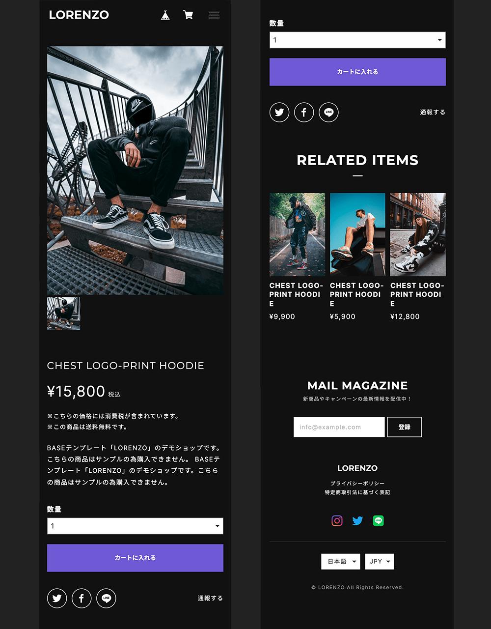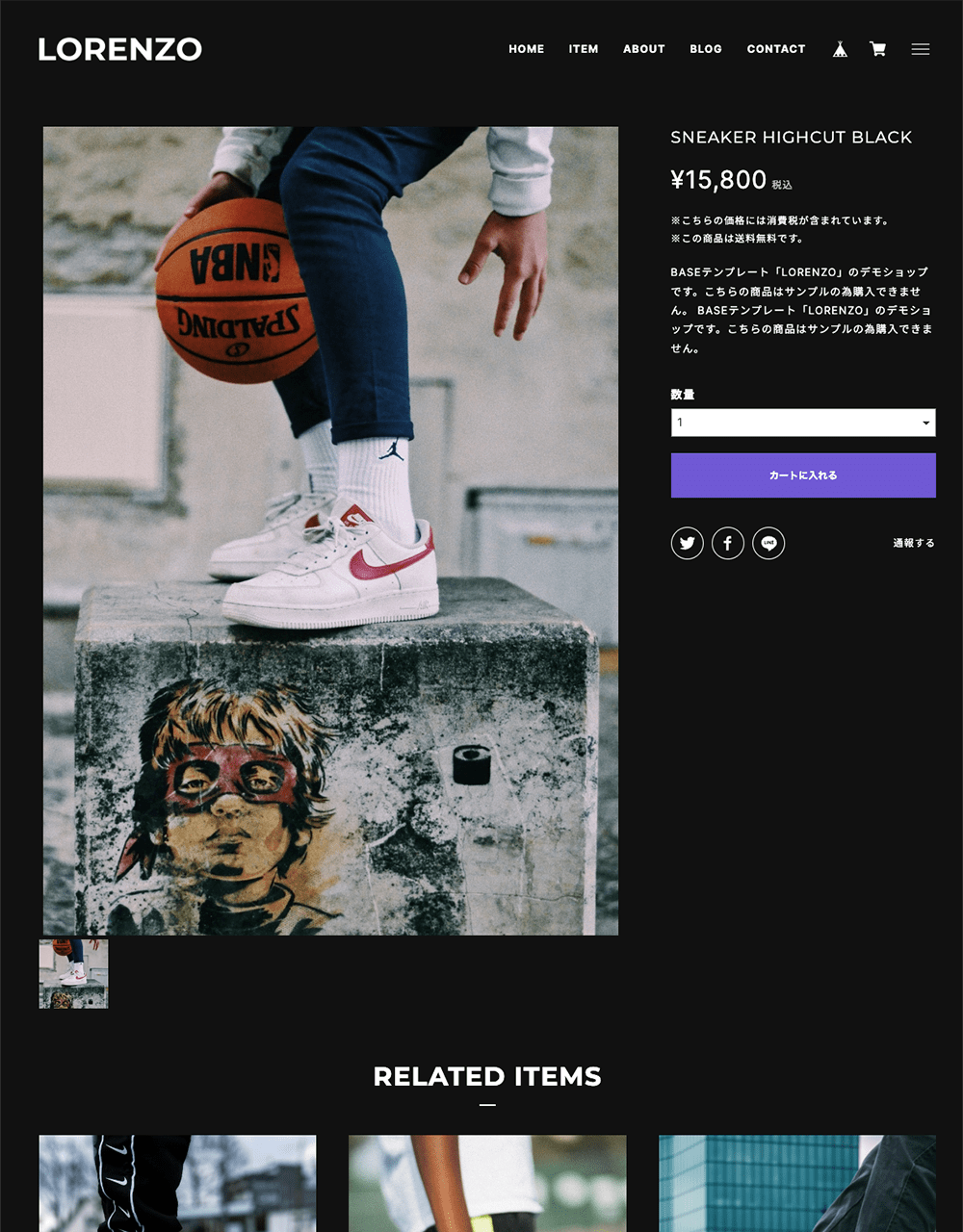 LORENZOは写真をダイナミックに見せることに特化したBASEテンプレートです。