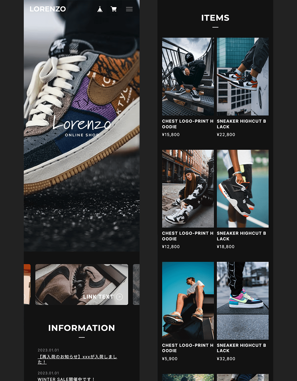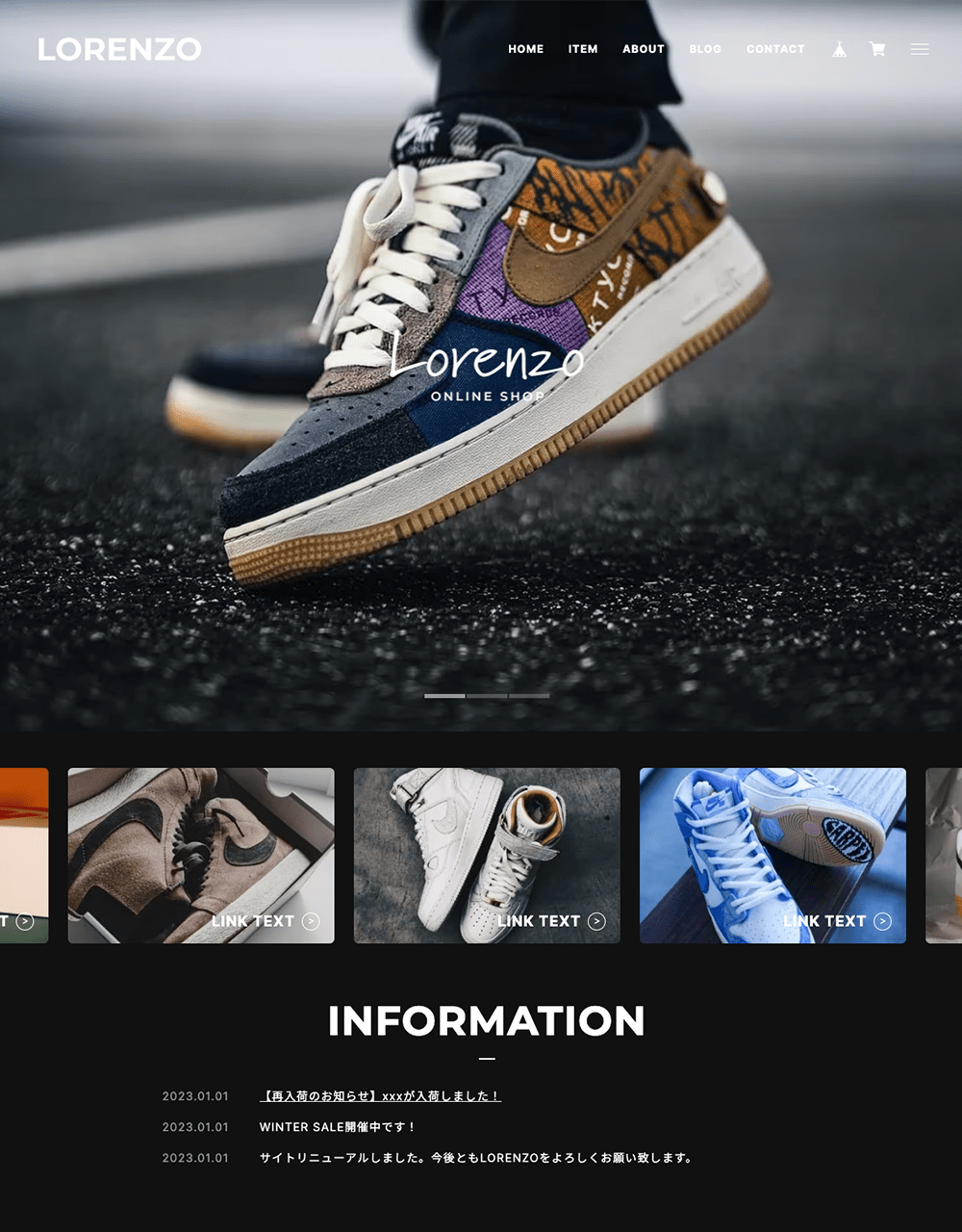 フォントもゴシック系から明朝体まで対応してるのでストリート系のファッションからアクセサリーや美容系など様々なショップで使えるテーマになっています。