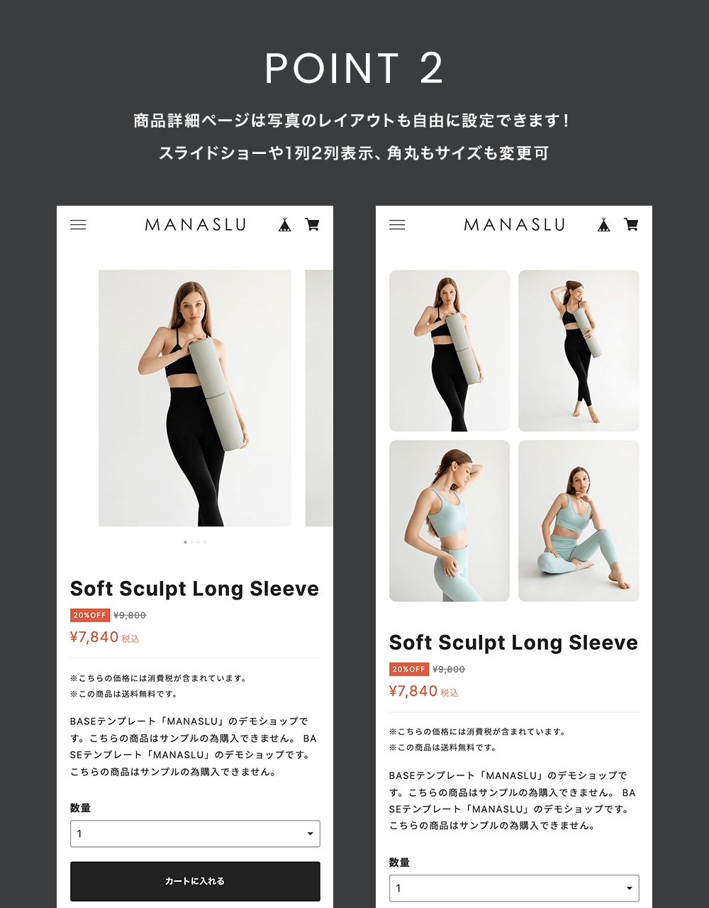 また、MANASLUは大きめサイズのモニターでも写真を綺麗に見せ、快適にショップを楽しめるようにデザインしています。