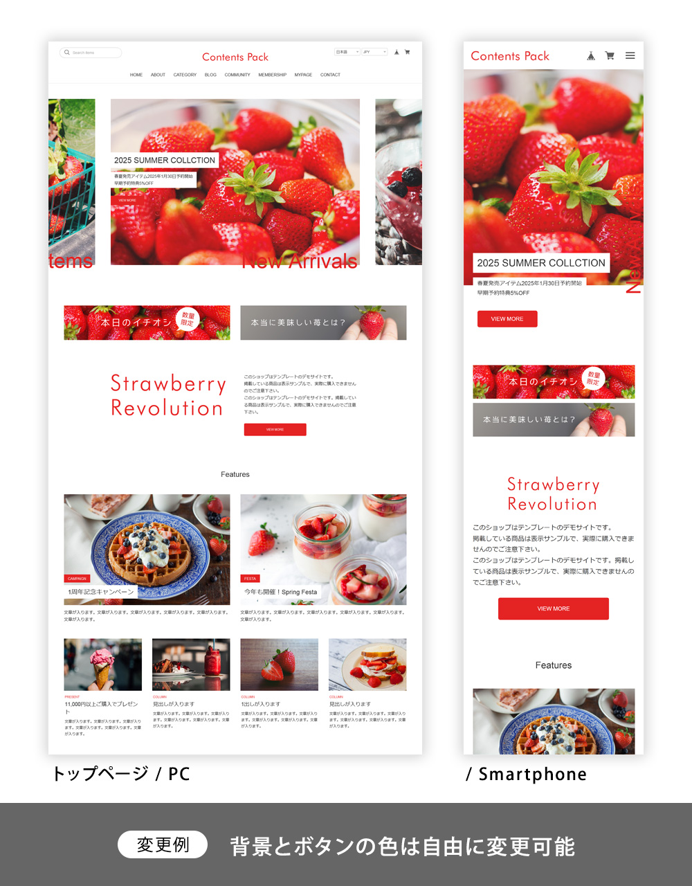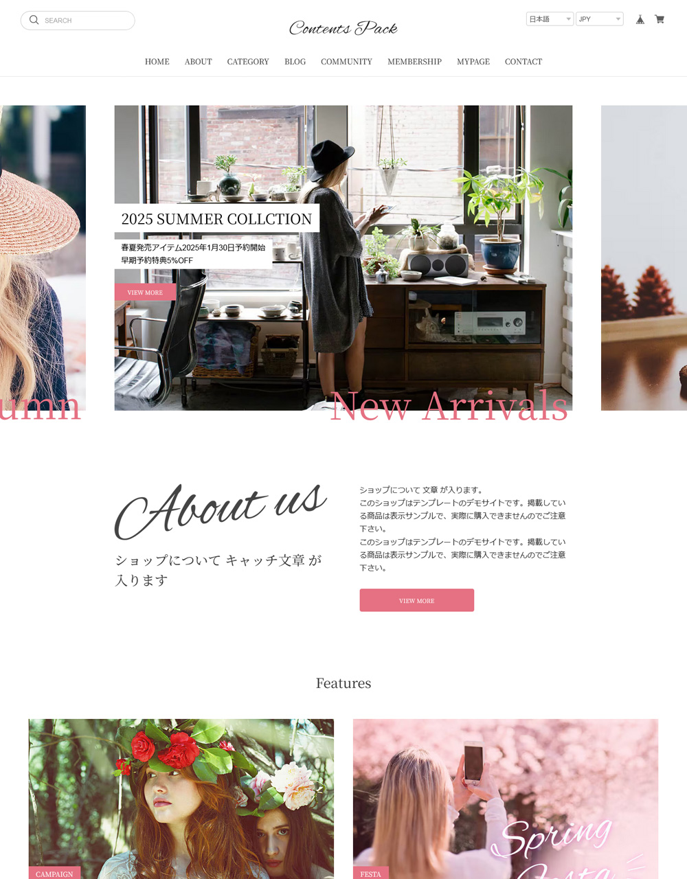 コンテンツでの訴求を重視したショップにおすすめのテーマです。